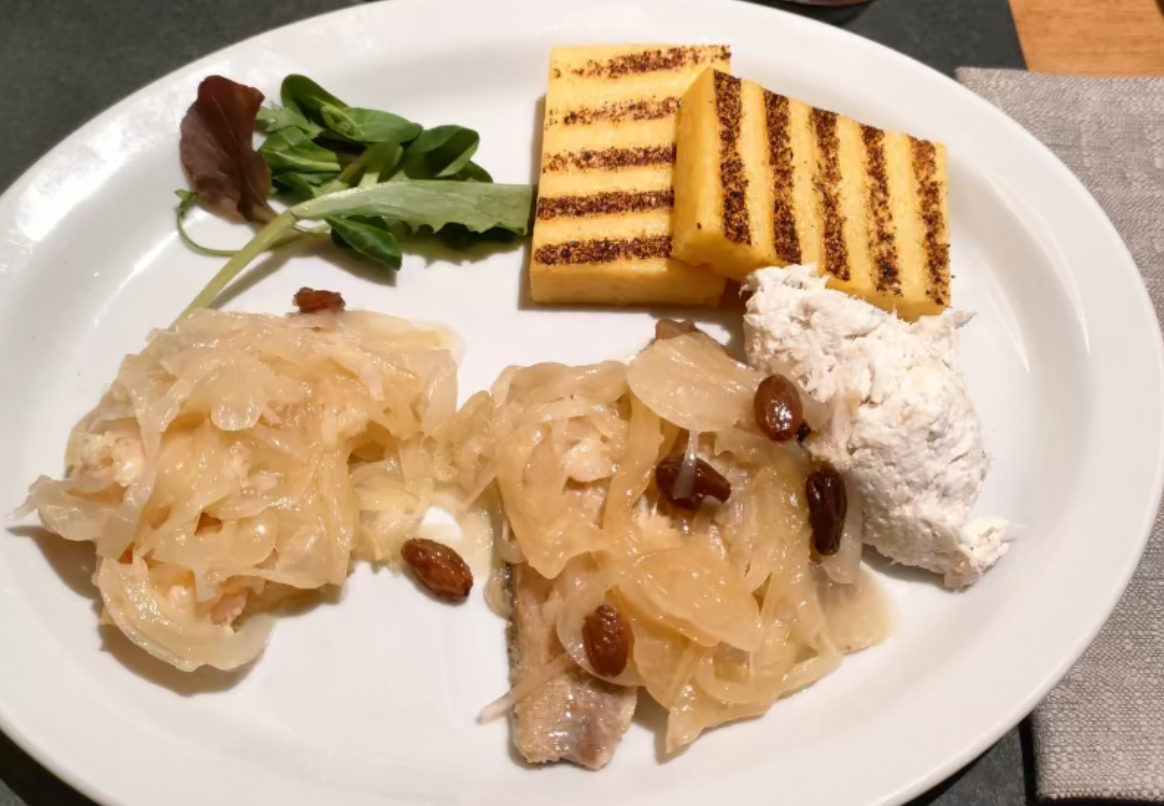Antipasto Veneto con baccalà mantecato, sarde e gamberi in saor e